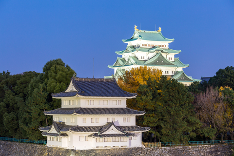 La visite continue avec le château de Nagoya, il date du 17ème siècle et servait de noble siège à Owari-Tokugawa. Il est spécialement célèbre à cause de ses deux Kinshachi en or - des dauphins stylisés, qui sont placés aux pignons de la toiture principale. Ils représentent en même temps aussi, le symbole de la ville Nagoya. L´intérieur de nombreux bâtiments de l´enceinte a l´air très moderne, mais fut dès lors de nouveau édifié dans un authentique style de construction.