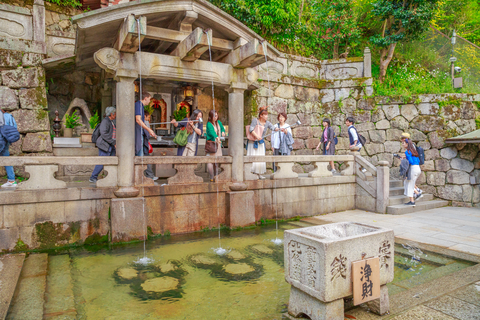 Arrivé en haut, s’offre à nous, du balcon du temple Kiyomizu, une vue majestueuse sur Kyoto. Sous la terrasse en bois du temple de l’eau claire, nous pouvons goûter à l’eau de la source de laquelle le temple tire son nom. D’après ce qui est dit, elle aurait des pouvoirs de guérison. Même si, là encore ce n’est qu’une légende et que j’ai des raisons d’en douter !